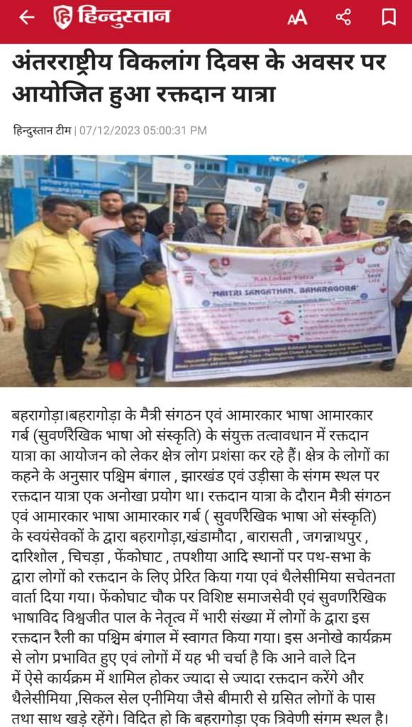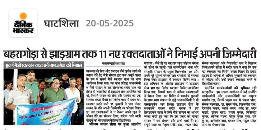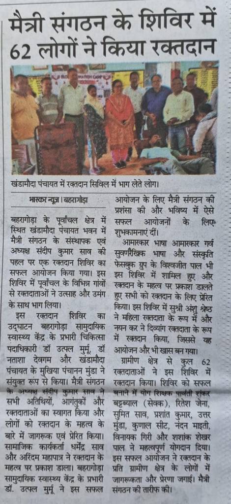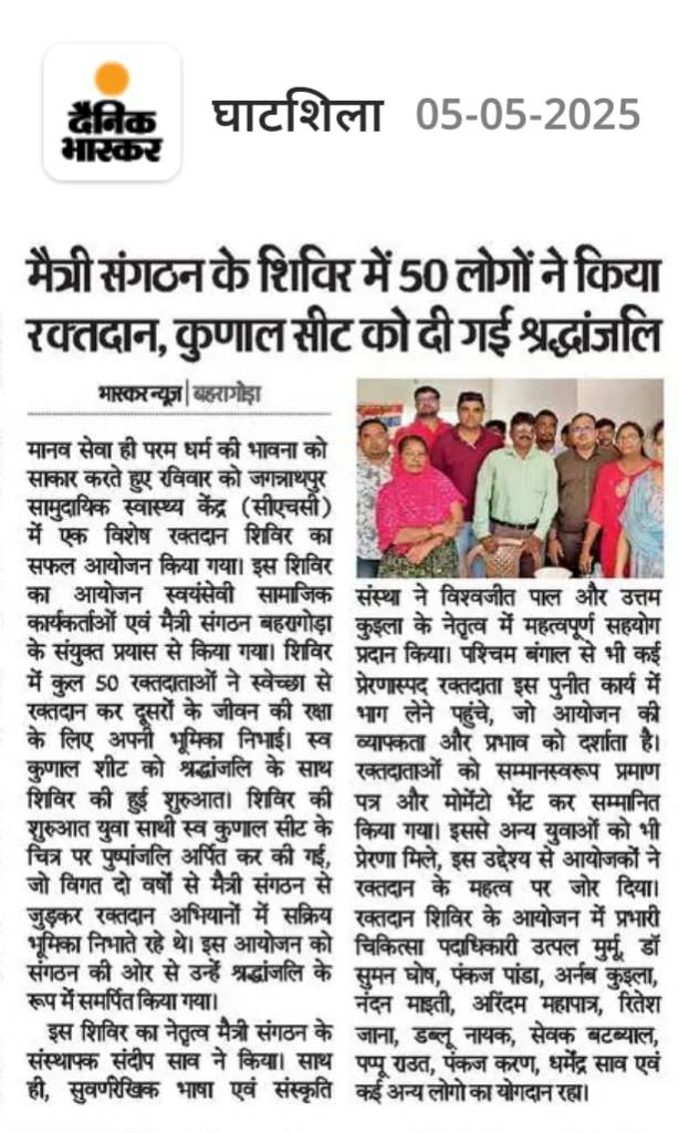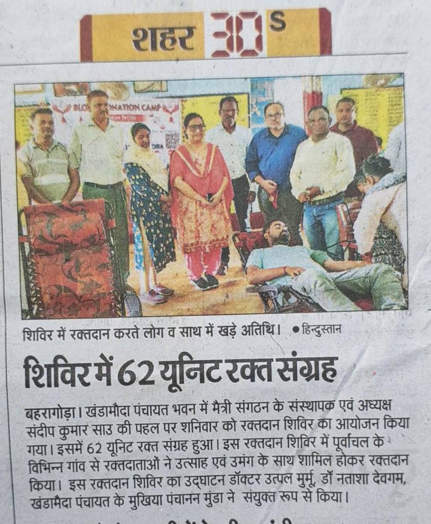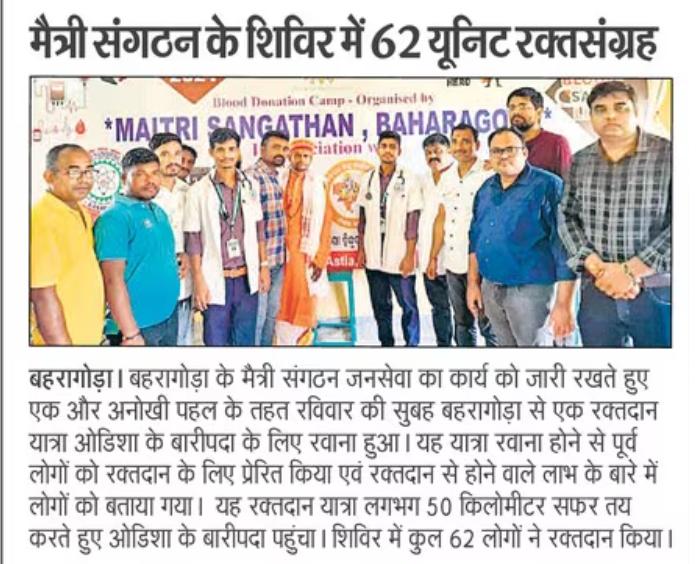 Maitri Sangathan promotes health awareness across rural India through blood donation rallies, camps, and the mission “Ek Nayi Raktdata”, along with health camps, yoga camps, and other wellbeing activities to build a healthier community.