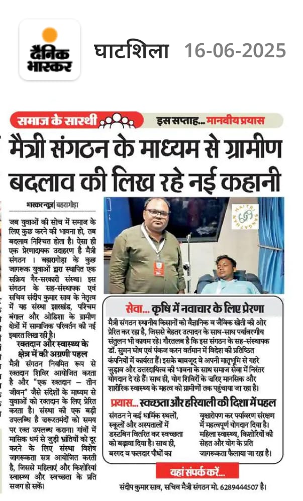 Founded with the vision of social harmony and grassroots development, Maitri Sangathan works at the ground level to bring positive change in rural and semi-urban communities across India. Presently active in Jharkhand, West Bengal, and Odisha.